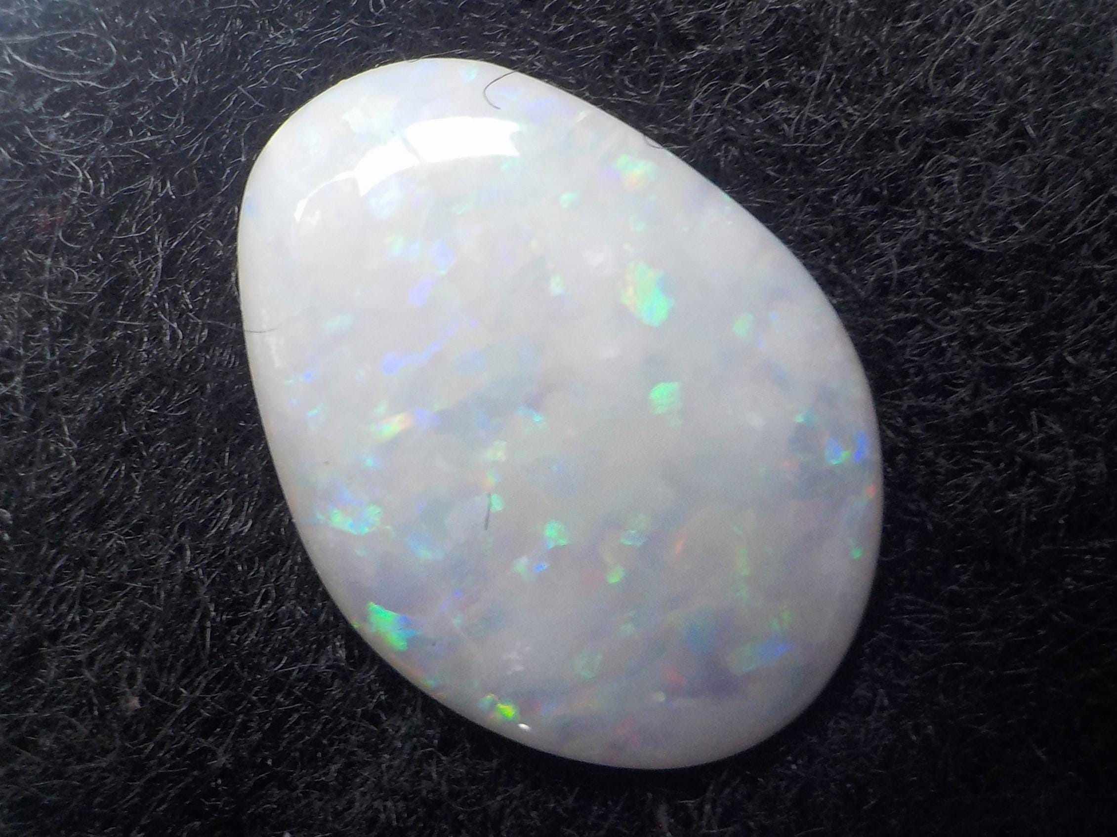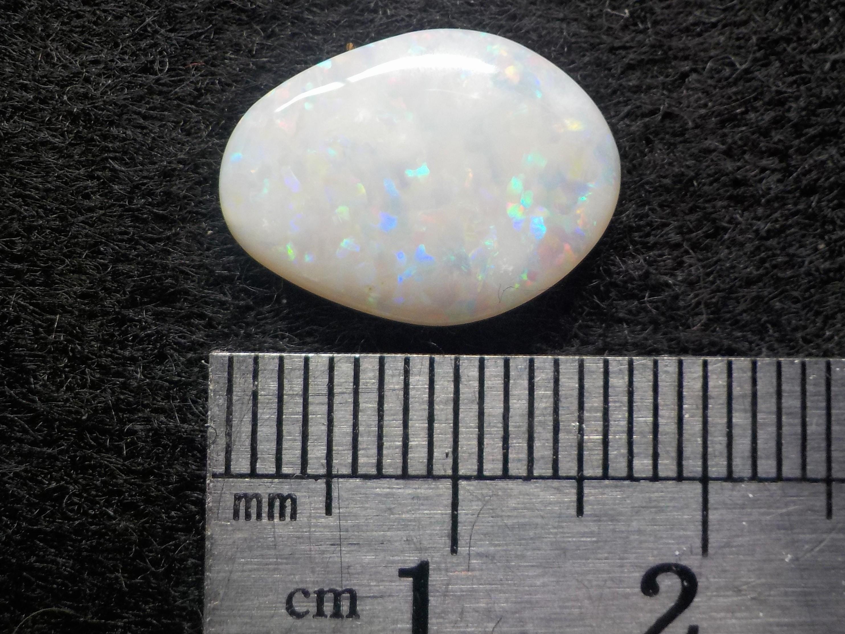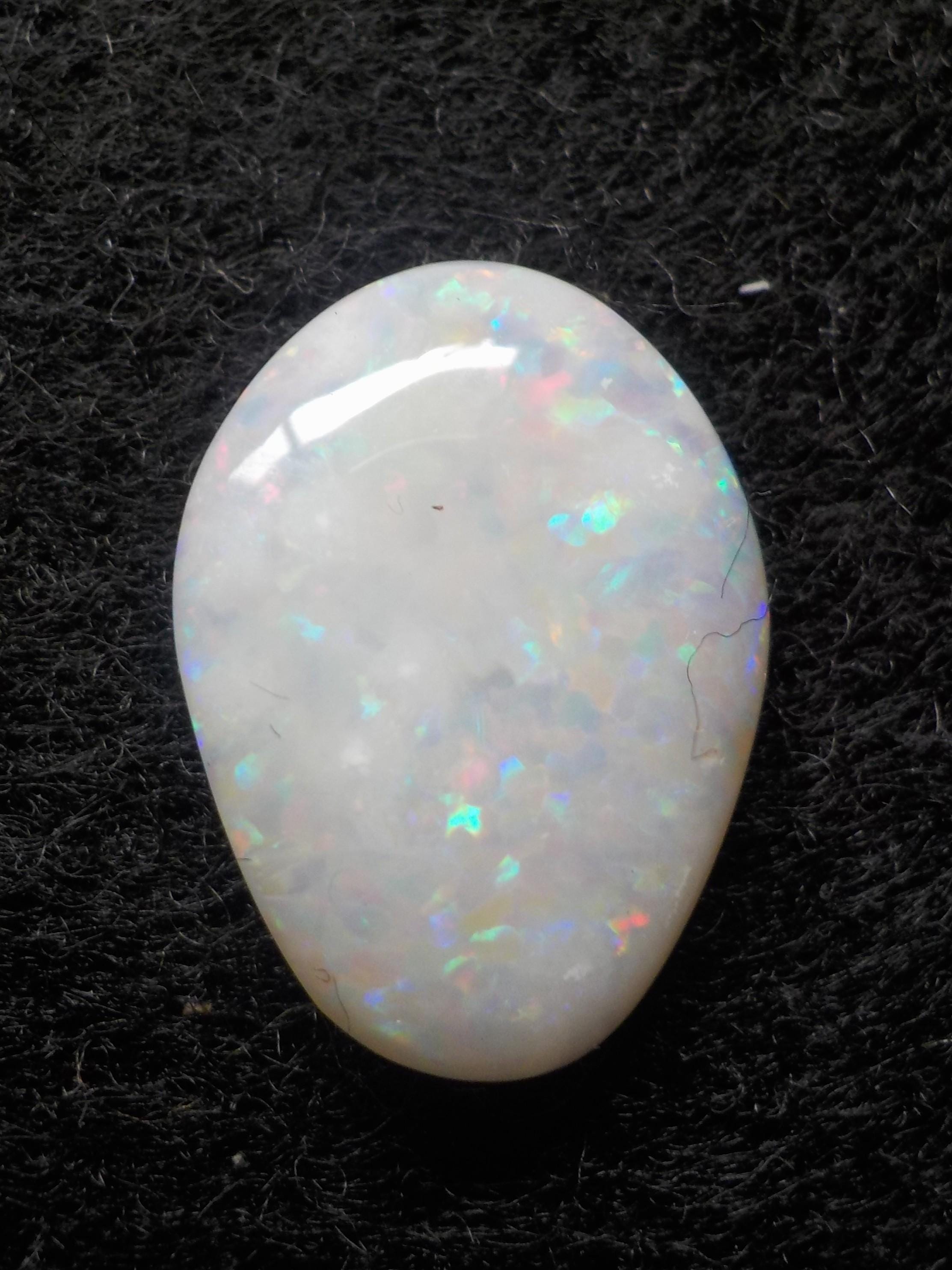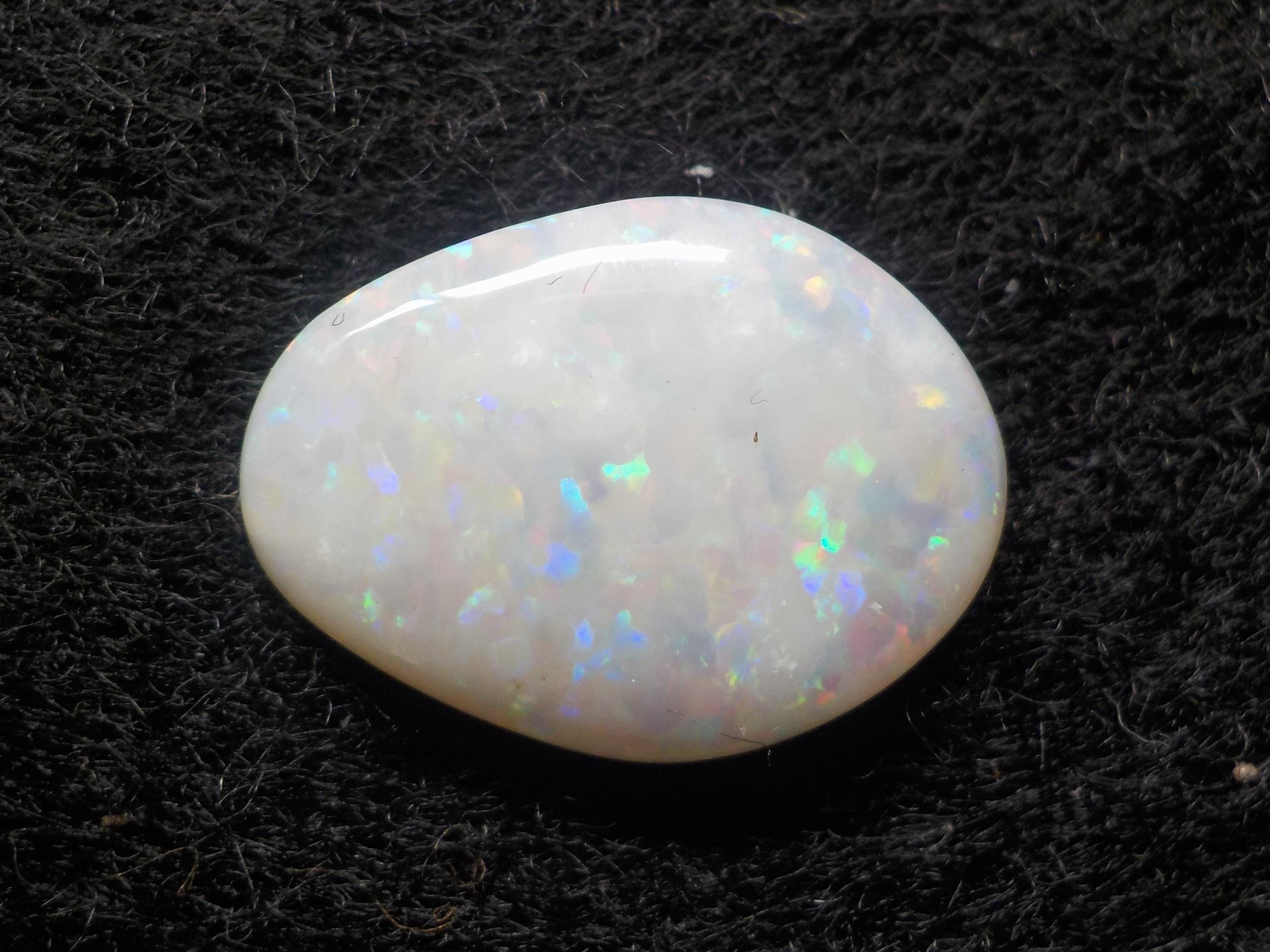 This lovely Coober Pedy milky white Opal displays a full multicolor coverage, including the highly desirable reds.