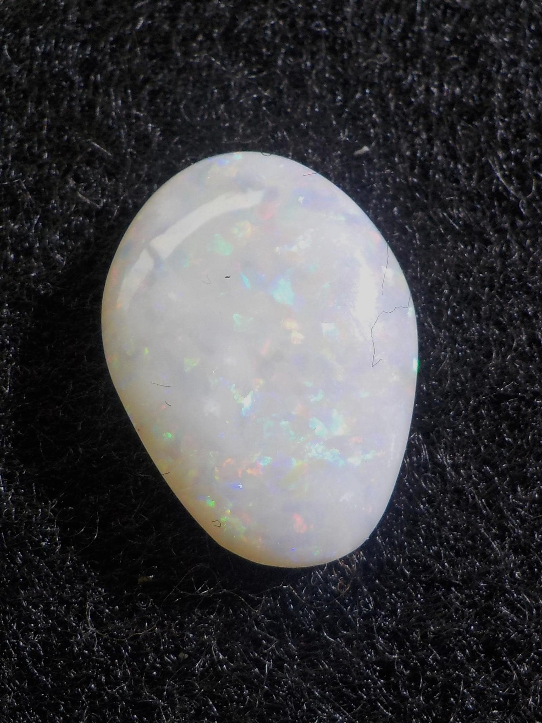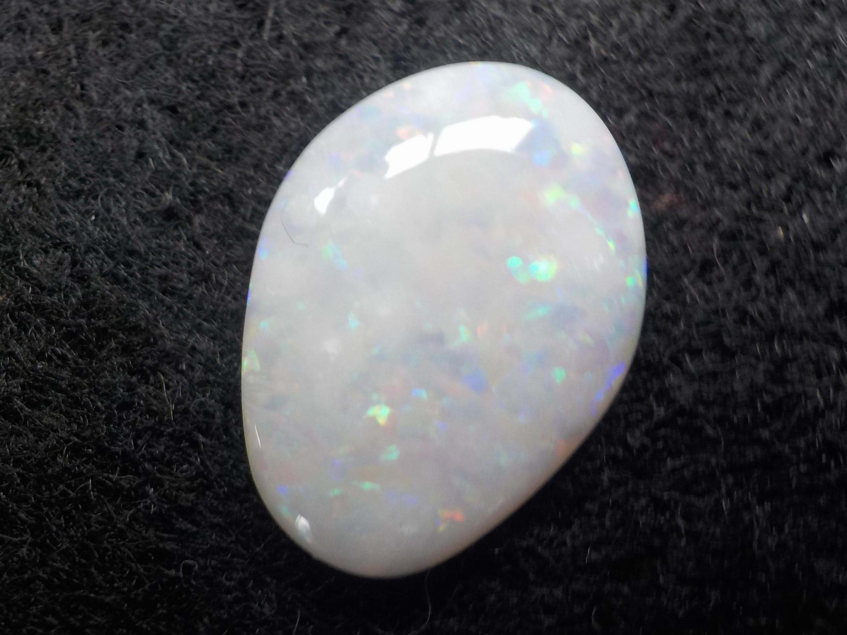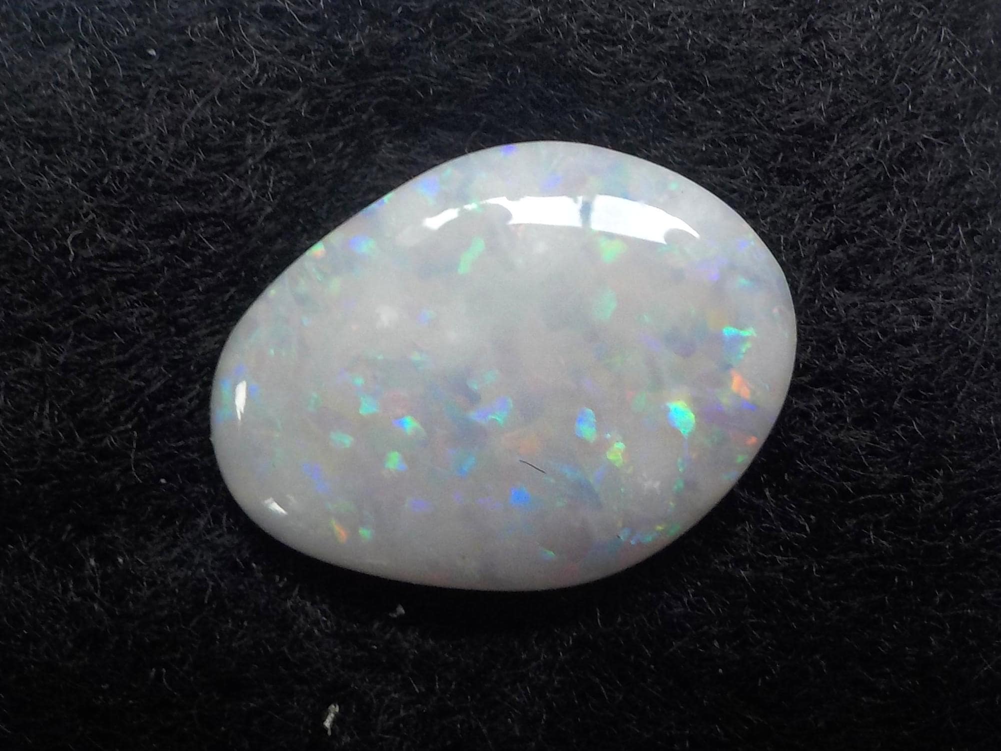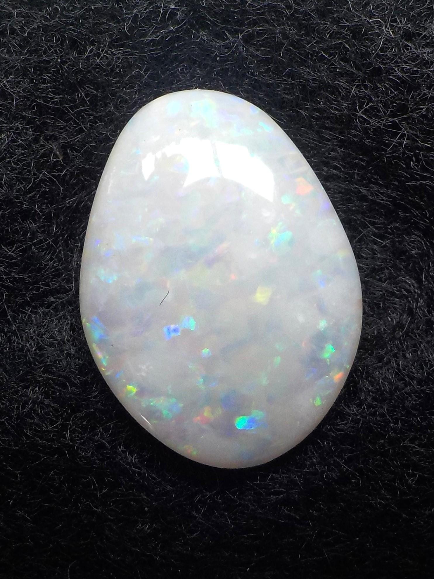 This lovely Coober Pedy milky white Opal displays a full multicolor coverage, including the highly desirable reds.