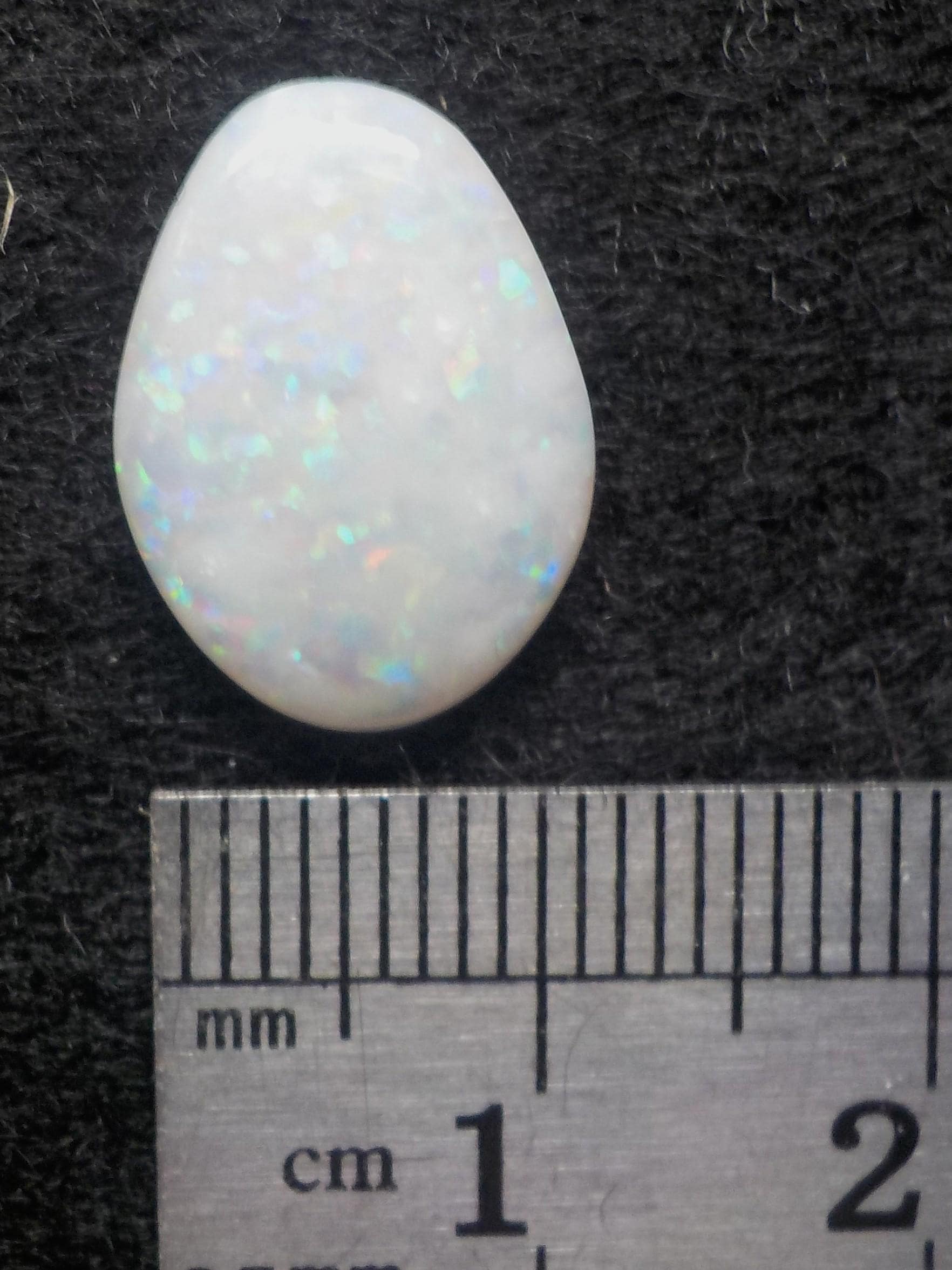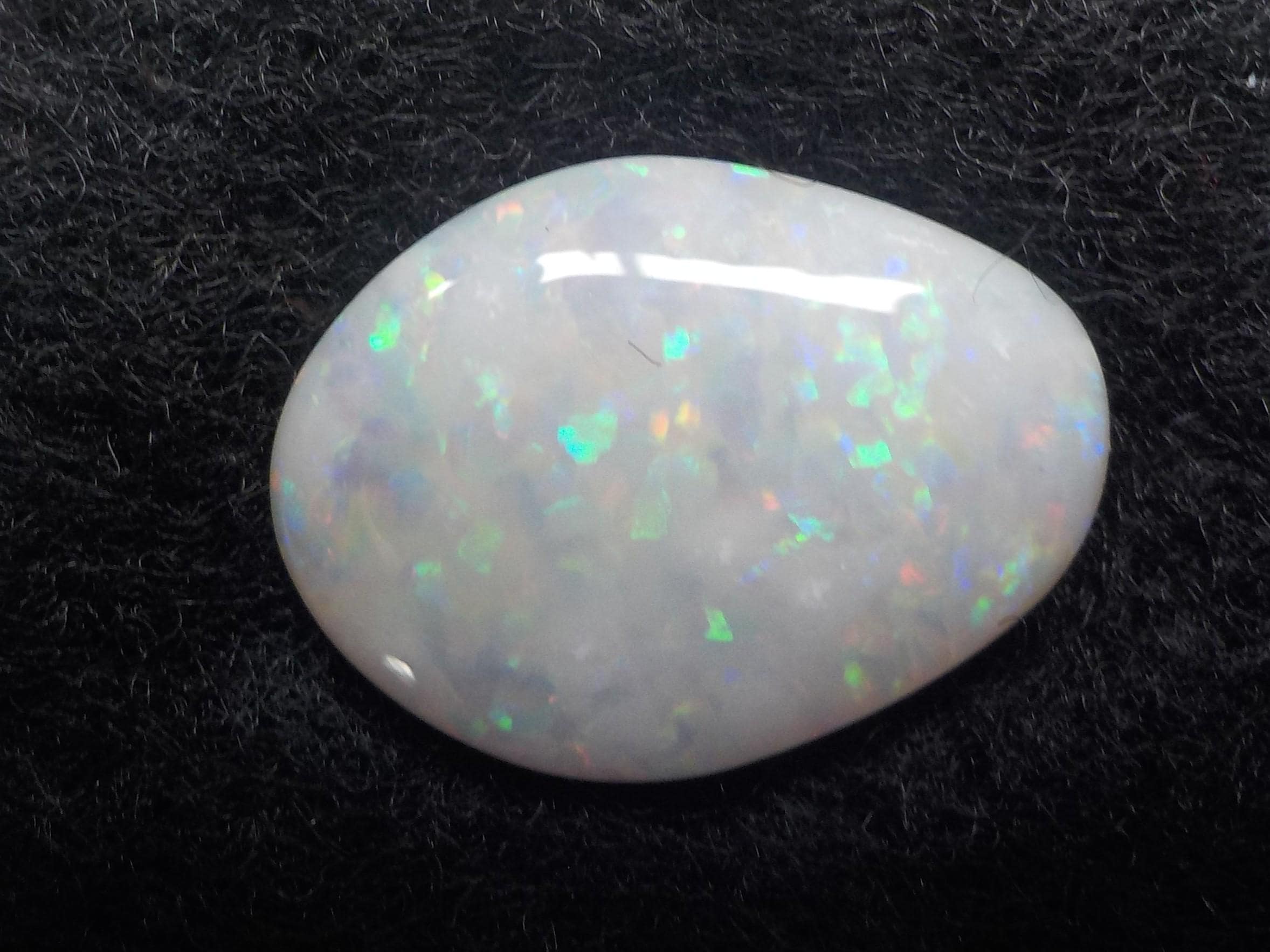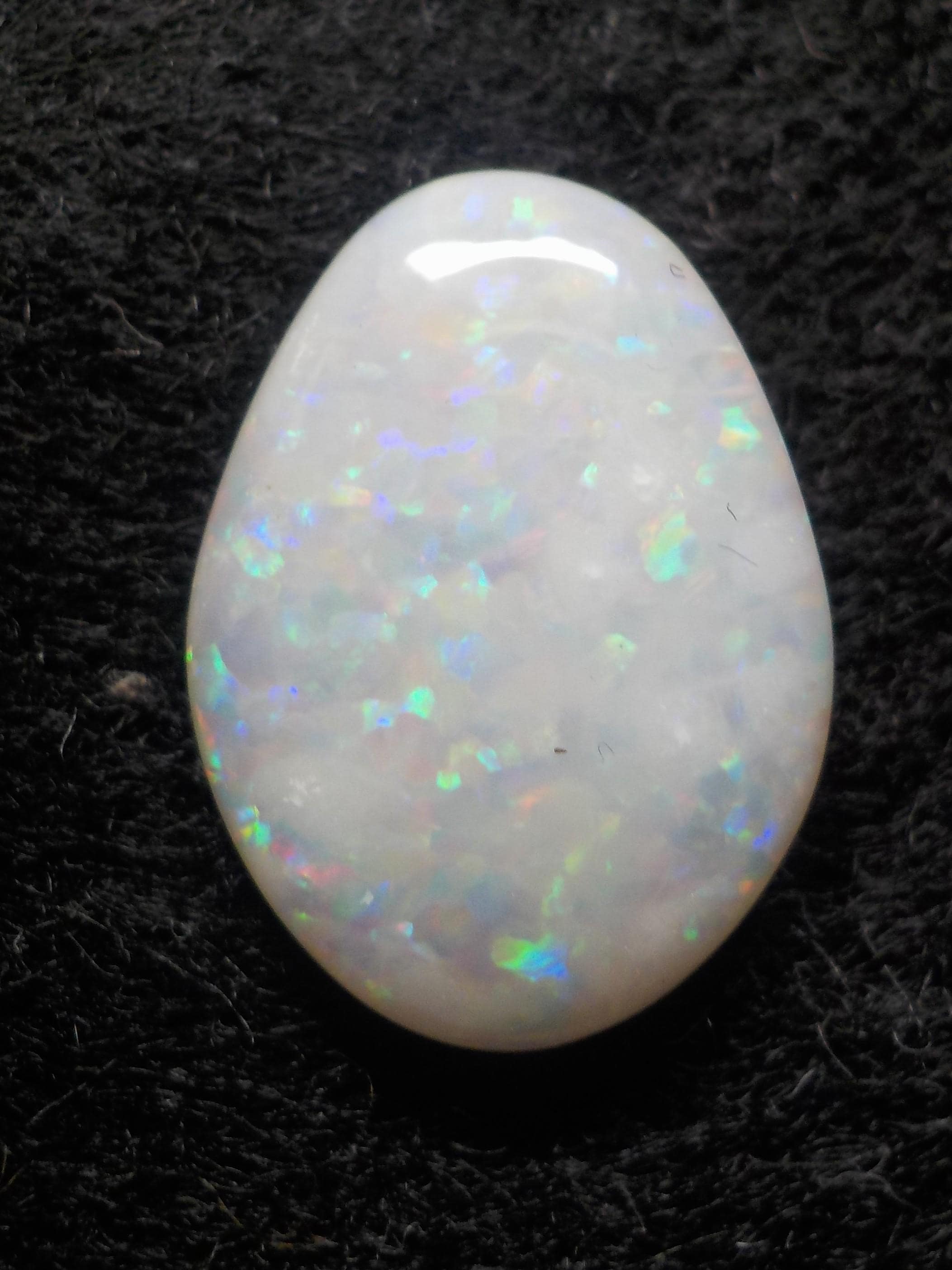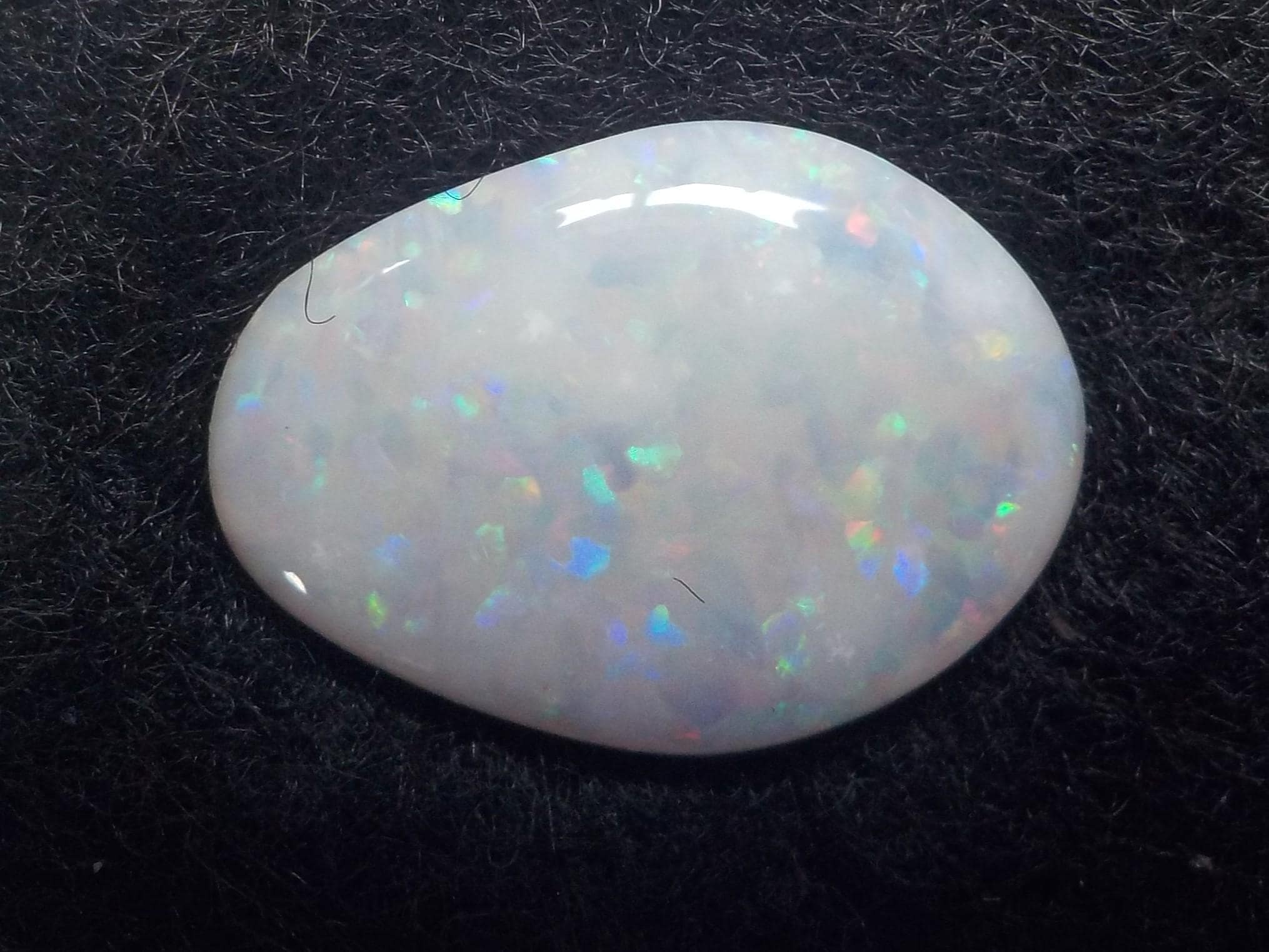 This lovely Coober Pedy milky white Opal displays a full multicolor coverage, including the highly desirable reds.
